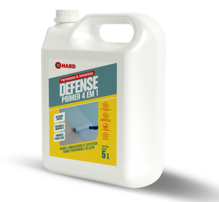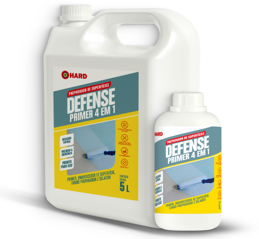 Hard Defense Primer 4 em 1 é uma emulsão acrílica, pronta para uso, para preparo de substratos pulverulentos, que aumenta a resistência à abrasão de bases fracas, minimiza a formação de poeira em superfícies cimentadas e facilita a aplicação da Linha Defense. Pode ser utilizado como primer, endurecedor de superfície, fundo preparador ou selador.